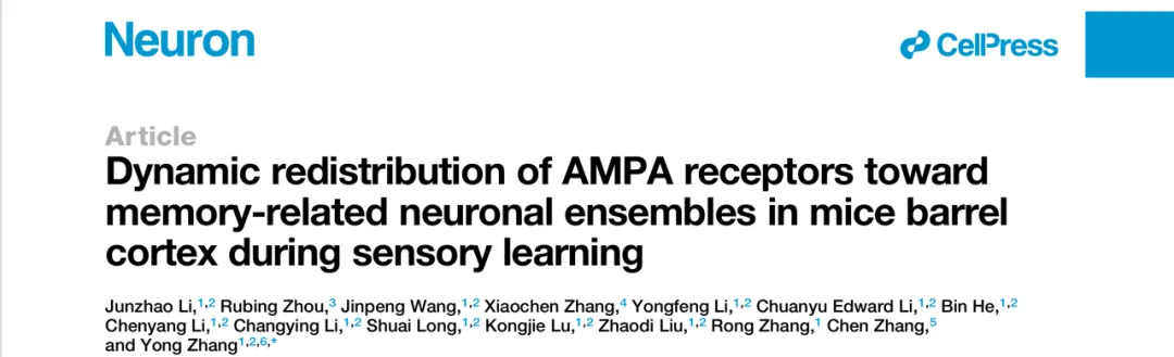 张勇课题组揭示内源性AMPA受体在印迹细胞群的动态再分布在感觉学习中的关键作用